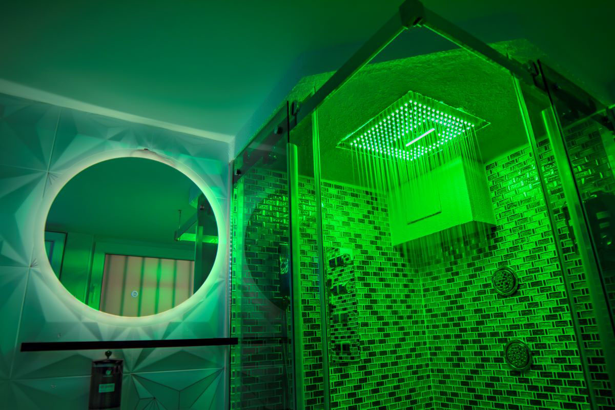 Specijalno osvetljenje sa luksuznim nameštajem i opremom čini ovaj apartman idealnim za ljude koji žele da priušte sebi jedinstvene i nezaboravne momente.